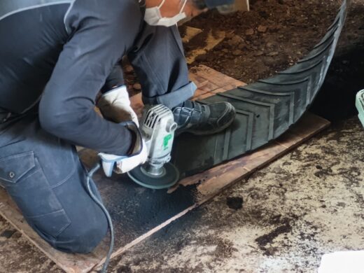 肥料製造の工場にて、経年劣化で搬送ベルトが端からどんどんと裂けていて、原料を安定した量で搬送できず、生産効率が低下している状況でした。今すぐに交換が必要な状態なのに、コンベアメーカーに交換用のベルトを発注すると納期が約2週間と長く、そのあいだ製造ラインの稼働率が低下した状態が続くので、生産を止めることなく、短期間で復旧させることが最大の課題となっておりました。