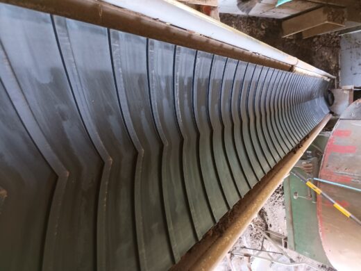 そこで当社にて、メーカーに純正のベルトを手配するのではなく、同等規格の特注搬送ベルトを製作できるベルトメーカーを手配し、納期を短縮する方法をご提案しました。特注ベルトを2〜3日で製作し、切り放しベルトの状態で現地で運び込んで、機長に合わせて正確に接合・テンション調整を実施しました。その結果、製造ラインを止めることなく復旧することができ、搬送量は正常値に回復し、約10日間納期を短縮をすることができました。お客様より「迅速かつ的確な対応だった」とご満足いただけました。