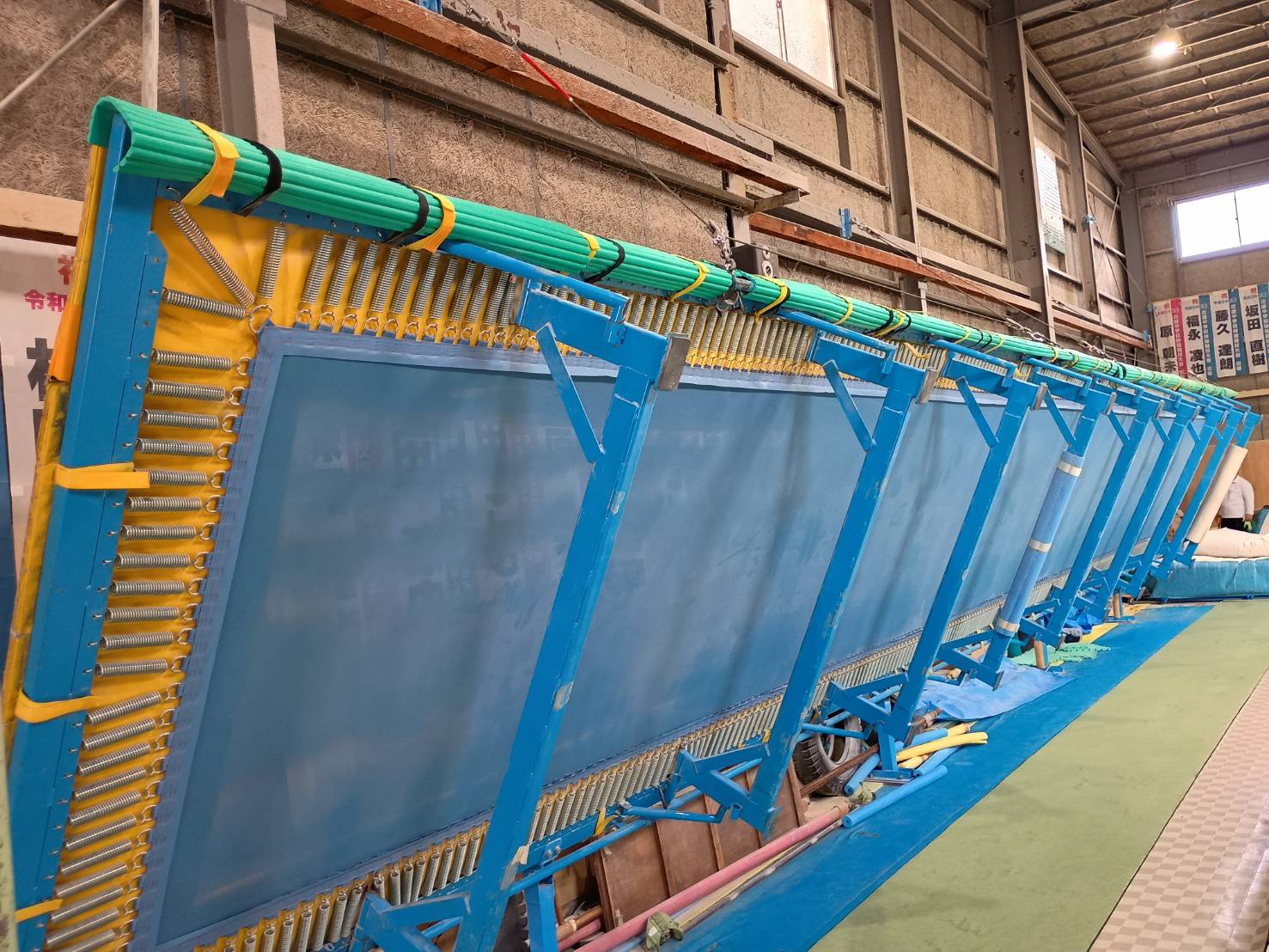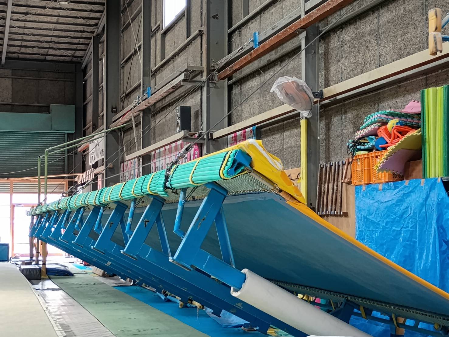 体操クラブを運営するお客様より、幅14mのロングトランポリンを自動で設置収納するための設備として稼働してるウインチについて、メンテナンスのご依頼をいただきました。
